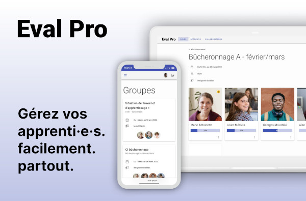Created in partnership with Nothing AG, Eval Pro is an online platform to facilitate the evaluation process of apprentices by trainers of inter-company courses. The platform is conceived to be adaptable to any training center and apprenticeship, and is already in use by the Forestry Training Center (CFPF).